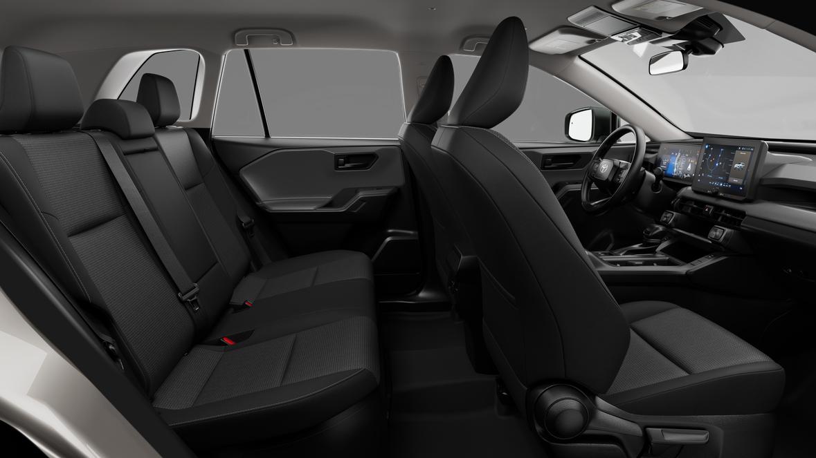 - Fabric-trimmed seats; 6-way manual front seats with seatback pocket